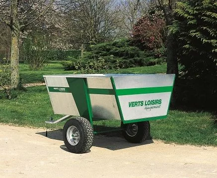 Cette remorque s”adapte sur tout type de tracteurs de jardins munis d’un système d’attelage.